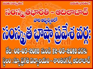 5 days spoken samskit classes at adilbad. Starts from 8/05/2018. For more details contact -9052632630..