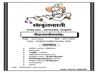 उप्पल्-प्रान्तैः गीताजयन्तीसन्दर्भे भगवत्-गीतायाः द्वादशाध्यायस्य पठनं बोधनं च योजितः अस्ति १८-१२-२०१८ दिनाड़्के नागार्जुननगरसामूहिकसभाभवनम् तार्नाकायाम् | समयः अस्ति सायं ५ वादने | अधिक विवरणाय सम्पर्क कुर्वन्तु ८८०१२०३३०६ || कृपया सर्वे आगच्छन्तु || On occasion of Geeta Jayanti Reading of 12th chapter and explanation will done on 18/12/2018 at Nagarjuna Community Hall Tarnaka from 5 00 pm. For more Details contact 8801203306. || We request you to attended this program...