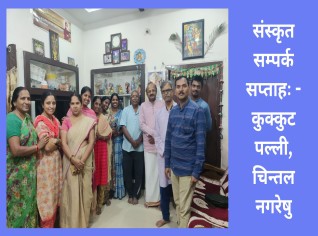 अद्य इत्युक्ते 01/08/2024 तः 07/08/2024 पर्यन्तं संस्कृत सम्पर्क सप्ताहः प्रचलति। 06/08/2024 दिनाङ्के मल्लिकार्जुनगिरि जनपदे, श्री नागराज वर्यः, दक्षिणमध्यक्षेत्र सङ्घटना मन्त्री, श्री उमेशः त्रिवेदी महोदय, त्रिलिङ्गाणा प्रान्तकार्यदर्शी च प्रवाससमये बहवः कार्यकर्तृन् , ज्यष्ठान् सम्पर्कं कृतवन्तः। श्री रामेश्वर रावु महोदयः, प्रान्त कोशाध्यक्षः, तस्य पत्नी श्रीमती पद्मावती, प्रान्त बालकेन्द्र प्रमुख्, श्री सत्यनारायण मूर्ति च भागं स्वीकर्वन्तः।..