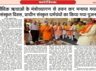 संस्कृतभारती व्रजप्रान्त द्वारा मार्गशीर्ष शुक्ल एकादशी मोक्षदा एकादशी की पूर्व सन्घ्या पर स्थानीय केशवदुर्ग (कंसकिला) में वैदिक विधिविधान के साथ हवन पूजन, गीताजी पारायण , विद्वतगोष्ठी एवं विद्वत सम्मान समारोह के साथ गीताजयन्ती मनाई गई। इस अवसर पर माननीय विधायक श्रीकान्त शर्मा , प्रमुख उद्योगपति डा वी के चतुर्वेदी तथा पं.कामेश्वरनाथ तथा विद्वतजनों एवं कार्यकर्ताओं की उपस्थिति रही। सभी को श्रीगीताजी की प्रतिलिपि तथा प्रसाद ..
