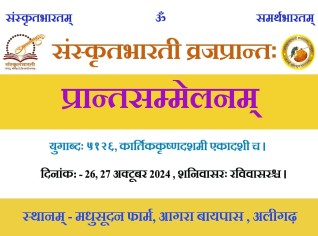 संस्कृतभारती व्रजप्रान्त: - प्रान्तसम्मेलनम् युगाब्द: ५१२६, कार्तिककृष्णदशमी एकादशी च । दिनांक: २६, २७ अक्टूबर २०२४, शनिवासर: रविवासरश्च। स्थानम्- मधुसूदन फार्म, आगरा बायपास, अलीगढ़। कार्यक्रमेस्मिन् उत्तरदायित्ववन्त: कार्यकर्तार: एव अपेक्षिता: सन्ति। शनिवार मध्याह्न 2 बजे तक प्राप्ति एवं रविवार सायं 04:30 बजे प्रस्थान। प्रान्त सम्मेलन में आने वाले सभी कार्यकर्ता दिए गए लिंक पर गूगल फॉर्म के माध्यम से अपना पंजीकरण अवश्य करें - ग..