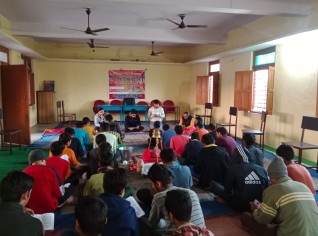 04-03-2024 दिनांके संस्कृतभारती हल्द्वानी द्वारा एम.बी.पीजी स्नातकोत्तर महाविद्यालय-हल्द्वानी इत्यत्र सोमवासरात् दशदिवसीयस्य सरलसंस्कृतसम्भाषणशिबिरस्य उद्घाटनं कृतम्। कार्यक्रमस्य आरम्भं महाविद्यालयस्य प्राचार्यः प्रो.एन. एस.बनकोटी , संस्कृत विभागाध्यक्षा प्रो कमला पन्त:, कुमाऊँ सम्भागसम्पर्कप्रमुखः श्रीमान् प्रकाश चन्द्र भट्ट इत्यादयः दीपप्रज्ज्वालनेन कृतवन्तः । तदनन्तरं महाविद्यालस्य छात्राभिः मंगलाचरण कृतम् । संस्कृतविभागाध्..