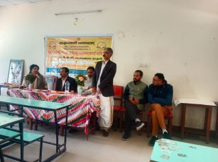 22-12-2023 दिनांके हलद्वान्यां महादेवगिरि-संस्कृतमहाविद्यालये (गीताशिक्षण-केन्द्रे) गीताजयन्त्याः आचरणं कृतम्। सर्वैः श्रीमद्भगवद्गीताया: पञ्चदश-अध्यायस्य पारायणं विहितम्। कार्यक्रमेsस्मिन् प्रान्ताध्यक्षा श्रीमती जानकी त्रिपाठी महोदया,प्रान्तसहमन्त्री डॉ. चन्द्रप्रकाश उप्रेती, महानगर-सम्पर्कप्रमुख: डॉ. हेमन्त जोशी,जनपद संयोजक: डॉ. नीरज जोशी इत्यादय: कार्यकर्तार: विद्यालयस्य शिक्षका: छात्राश्च उपस्थिता: आसन्। वन्दे संस्कृतमातरम्। . . . ...