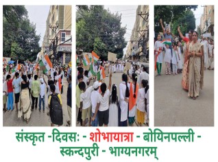 सार्थ-चतुर्वादने शोभायात्रा नगरस्य वीधिषु कृतम्। बहवः छात्राः शिक्षकाः कार्यकर्तारः नागरिकाः च भागं स्वीकृतवन्तः।